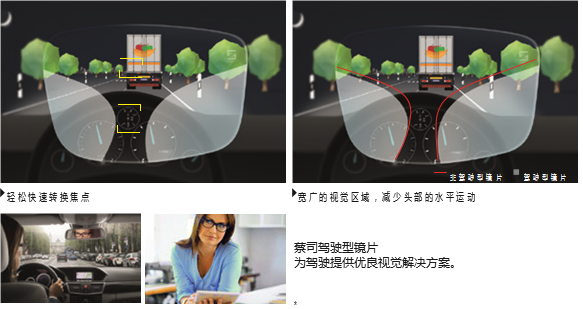 采用渐进多焦点设计,镜片上方矫正远视力,下方降低50-75度,减轻看近时的睫状肌压力913。